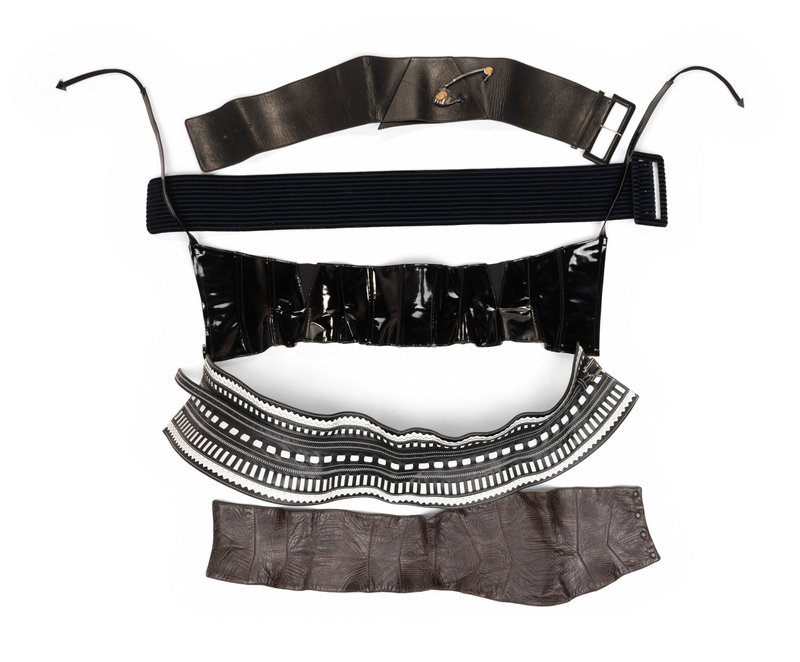 Five Designer Belts: One Ferré, One Mugler, Two Lagerfeld, and One Galanos, 1970-90s