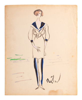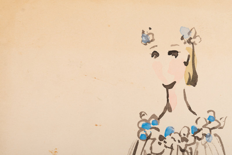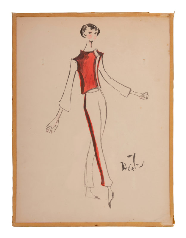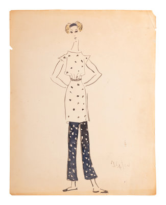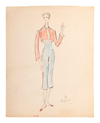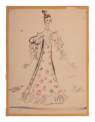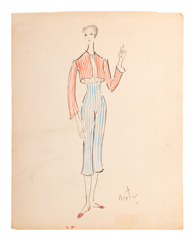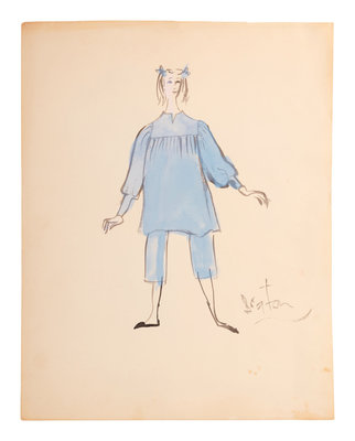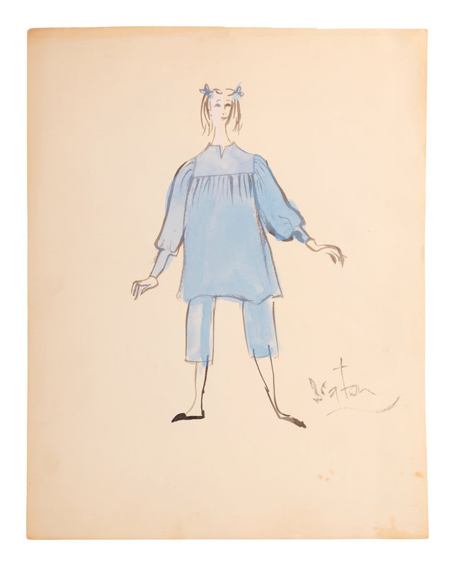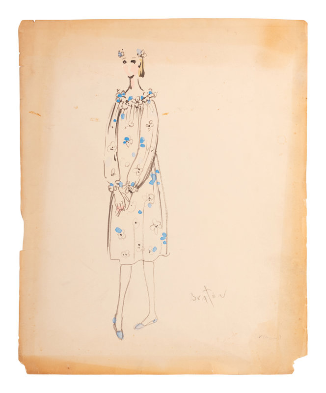 Cecil Beaton (1904-80) was a British photographer, painter, interior designer. He received several prestigious awards for his theater and film designs. Beginning in 1956, he was the costume designer for the Broadway musical My Fair Lady, which went on a US tour in 1957 before a celebrated production continued the following year in London’s West End. Due to Beaton’s popularity, he was hired by the 5th Avenue New York retailer, Bonwit Teller, to produce a collection of bedroom, patio and terrace designs. These nine illustrations feature some of the designs created by Beaton for that collection.