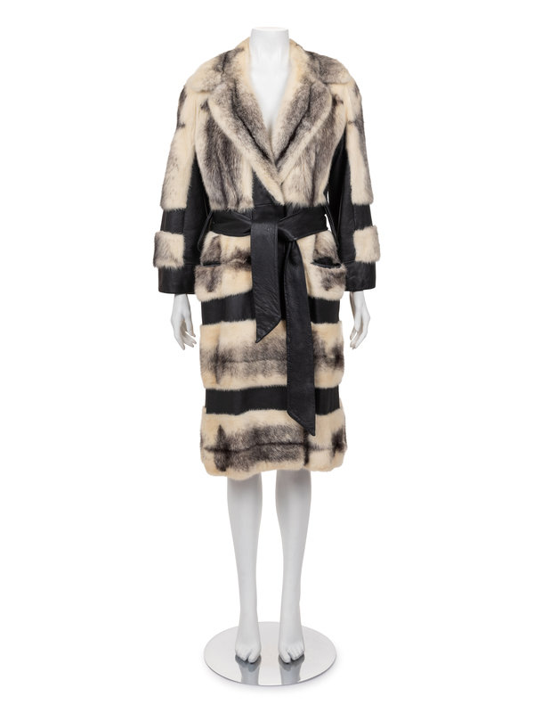 Fox Fur and Leather Belted Coat, 1980-2000s