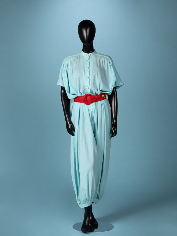 This haute couture jumpsuit was made by Givenchy for Mrs. Gutfreund when she was pregnant with her son.