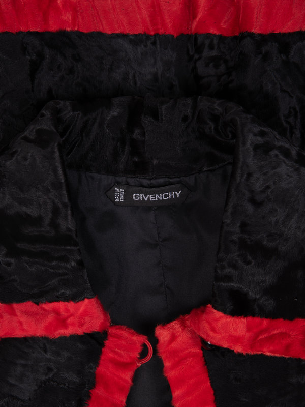 Givenchy Broadtail Fur Jacket with Red Trim, 1980-90s