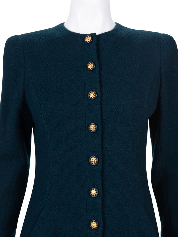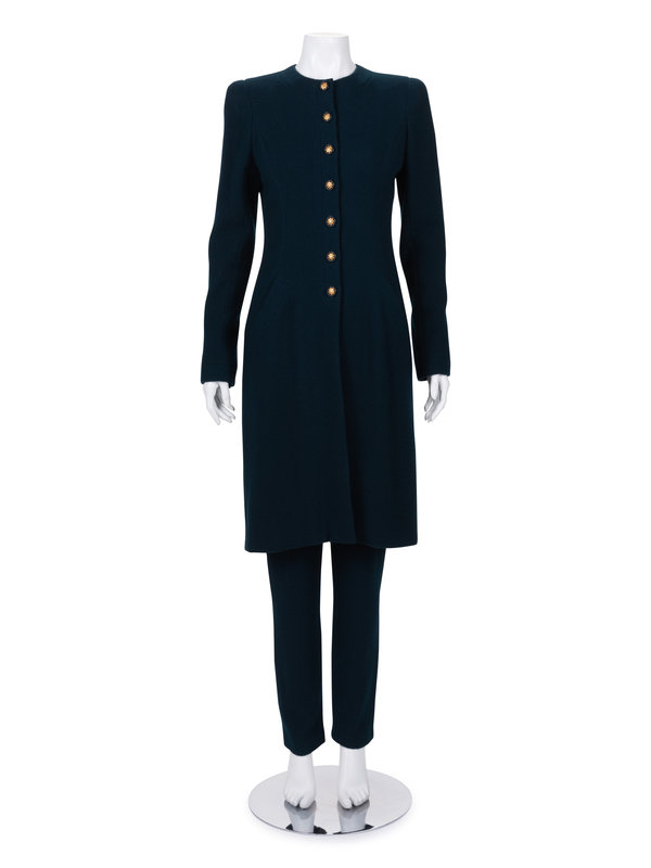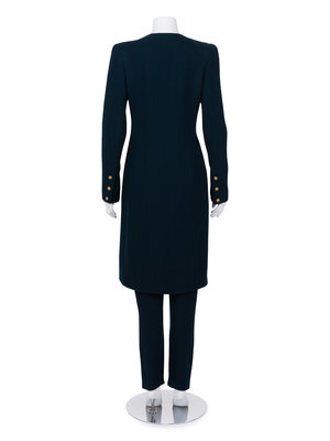Unlabeled Haute Couture Wool Long Jacket and Pants Ensemble, Attributed to Chanel, 1980-90s