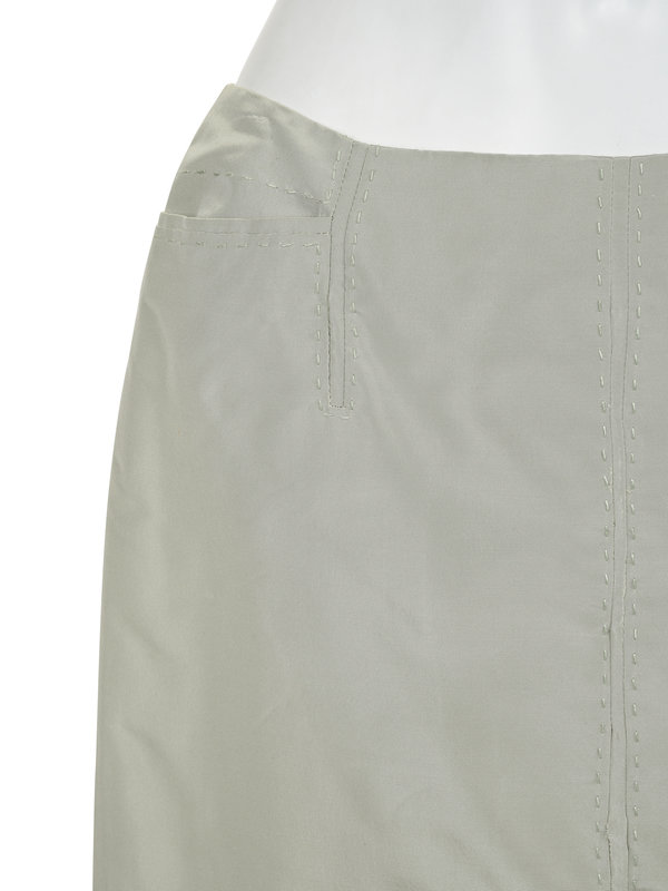 Pale green paneled taffeta skirt with accent stitching and left side zipper closure.