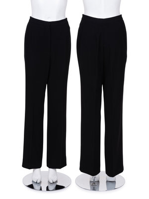 Haute Couture black wool twill weave straight fit pants with front zipper closure.