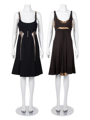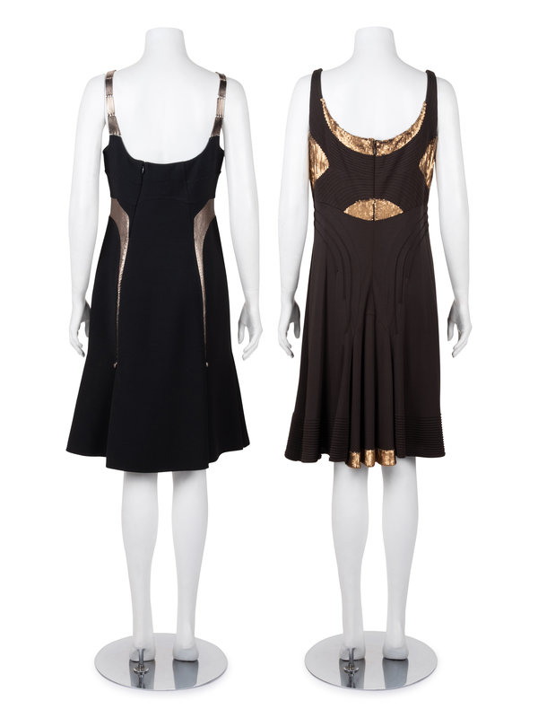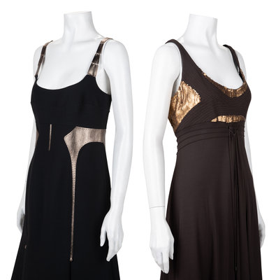 Two Chado Ralph Rucci Metallic Accented Sleeveless Dresses, 2000-10s