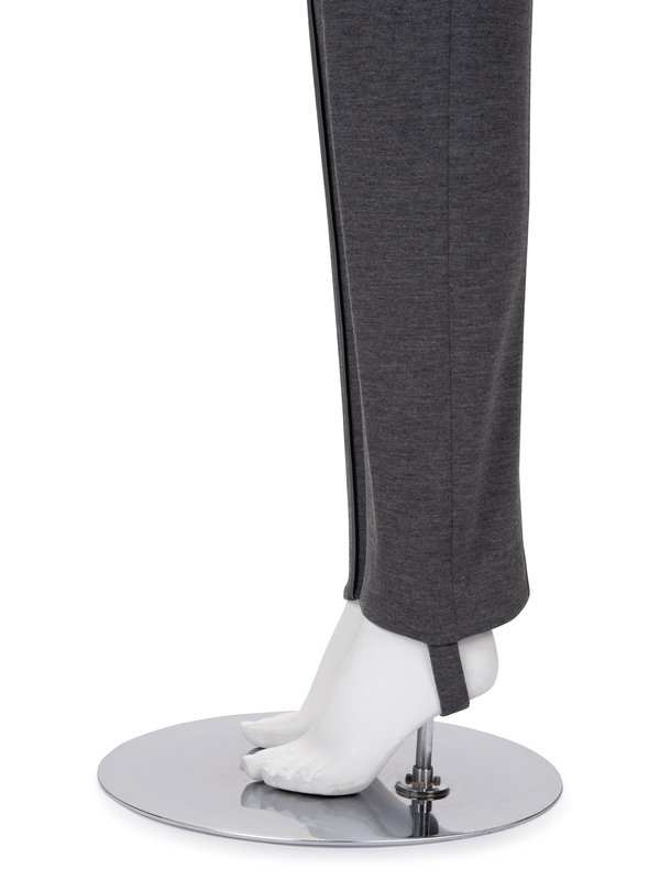 Black wool black straight-legged slacks with slits on the ankles, two front pockets, and front zipper closure.