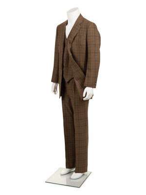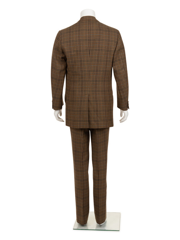 This custom suit was created for renowned stage actor Rex Harrison in his starring role of the West End production of Aren’t We All? in 1984. Finely made by the London Savile Row tailor Huntsman & Sons (founded in 1849), Harrison was photographed wearing this suit multiple times in the later years of his illustrious career. Rex Harrison’s name is typed on the Huntsman & Sons interior label, a common practice in men’s tailoring.