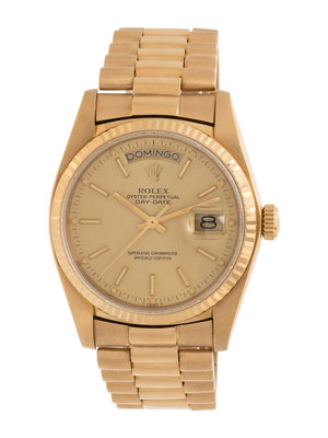 ROLEX, REF. 18038 18K YELLOW GOLD 'OYSTER-PERPETUAL SPANISH DAY DATE' WRISTWATCH, CIRCA 1982