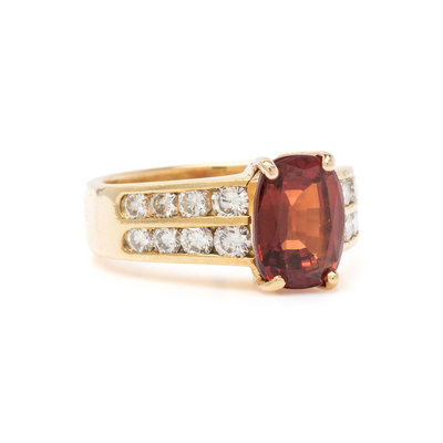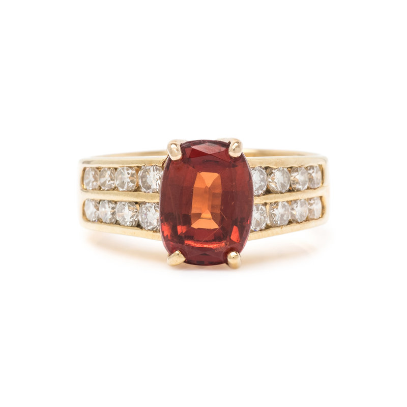 ORANGE GARNET AND DIAMOND RING