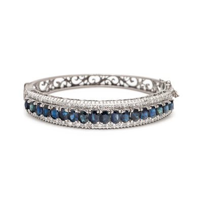 SYNTHETIC SAPPHIRE AND DIAMOND BANGLE BRACELET