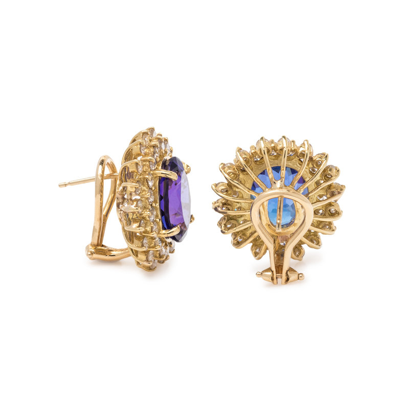 TANZANITE AND DIAMOND EARCLIPS