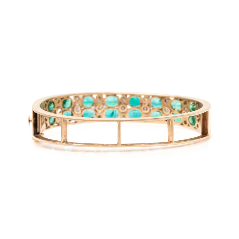 SYNTHETIC EMERALD AND DIAMOND BANGLE BRACELET