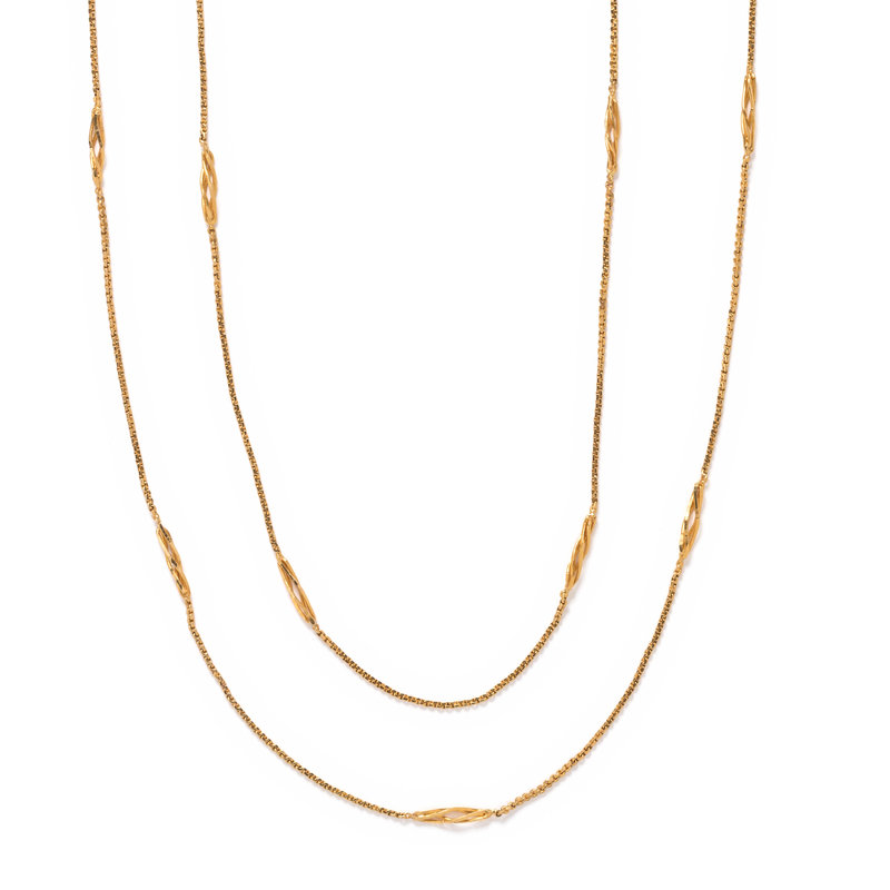 Consisting of a cable link chain interspersed with twisted links. 70 inches long.