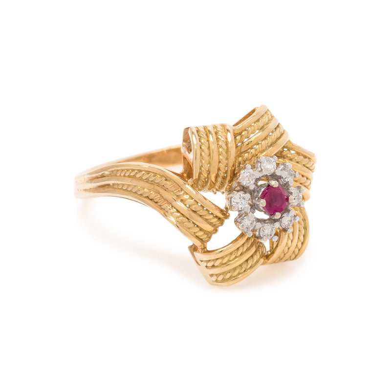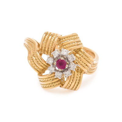 YELLOW GOLD, DIAMOND AND RUBY RING
