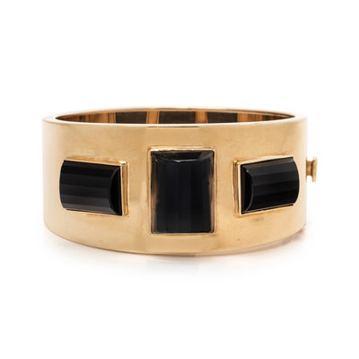 YELLOW GOLD AND ONYX BANGLE BRACELET