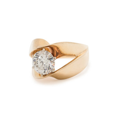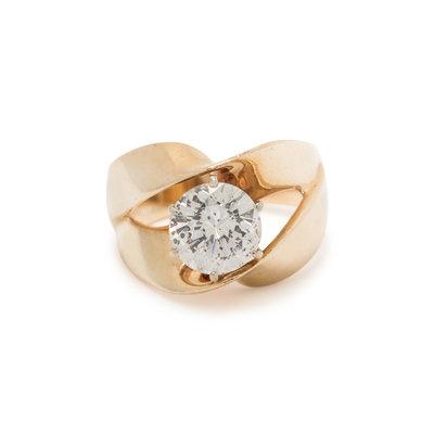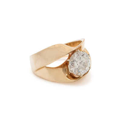 Containing one round brilliant cut diamond weighing 1.99 carats. Mounted in yellow gold. Ring size 7.