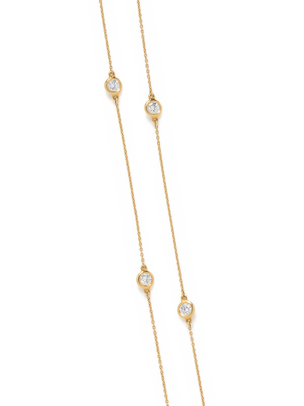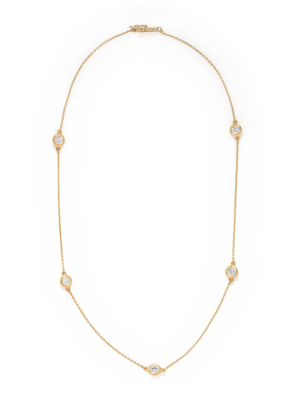 Consisting of a cable link necklace interspersed with five round brilliant cut diamonds weighing approximately 1.25 carats total. 15 1/4 inches long.