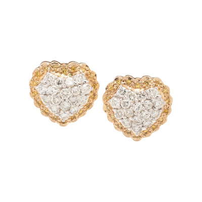 DIAMOND AND COLORED DIAMOND HEART EARCLIPS
