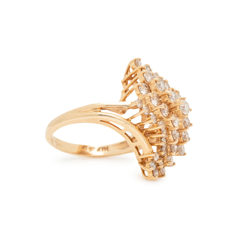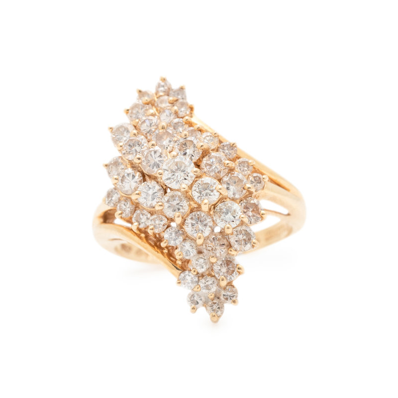 Containing 45 round brilliant cut diamonds weighing approximately 2.00 carats total. Ring size 6 1/4.