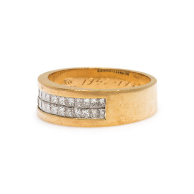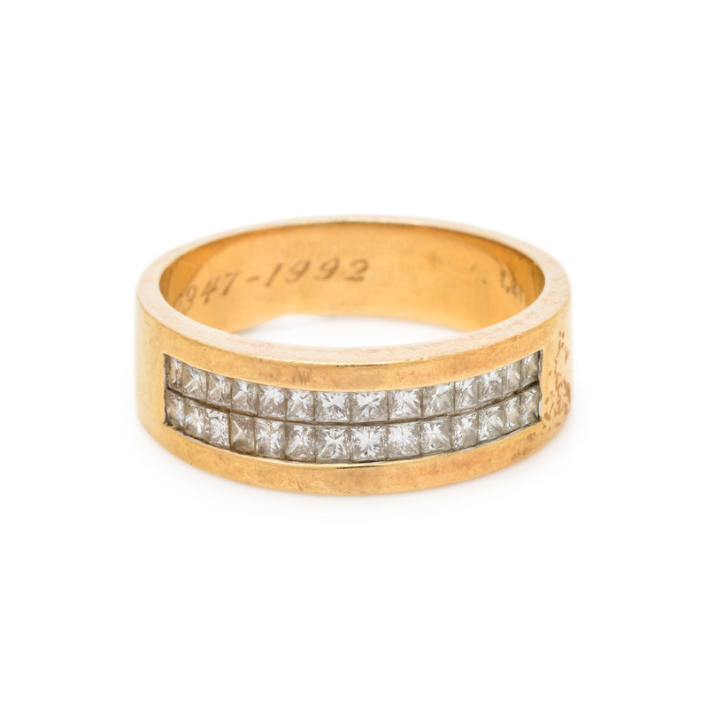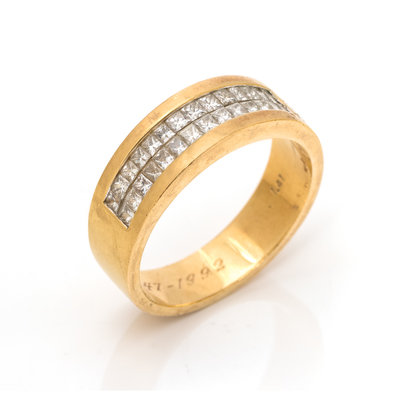 Containing 14 princess cut diamonds weighing approximately 1.40 carats total. Ring size 13.