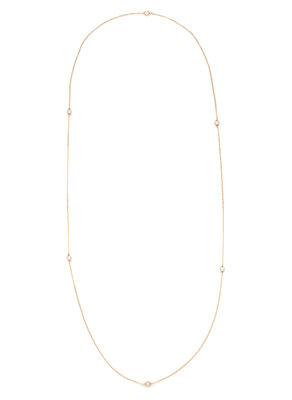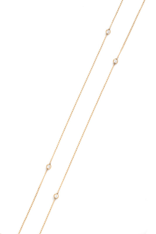 Consisting of a cable link chain interspersed with six round brilliant cut diamonds weighing approximately 0.75 carat total. 14 inches long.