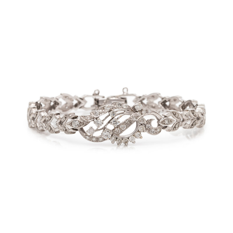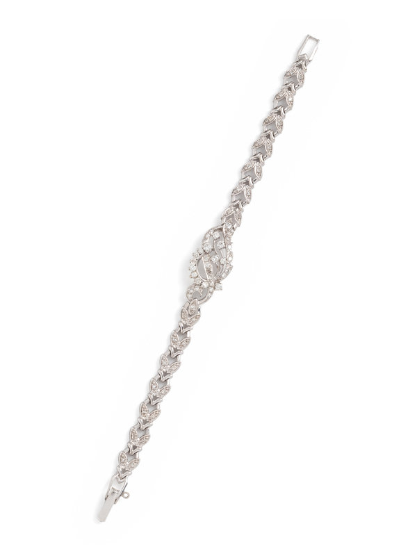 Containing numerous round brilliant and single cut diamonds weighing approximately 1.50 carats total. Mounted in white gold. 7 1/8-7 1/4 inches long.