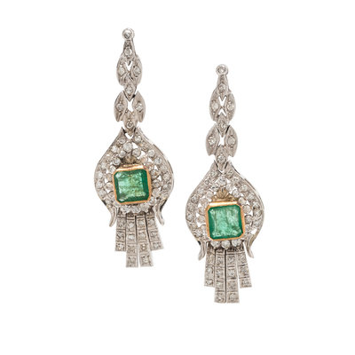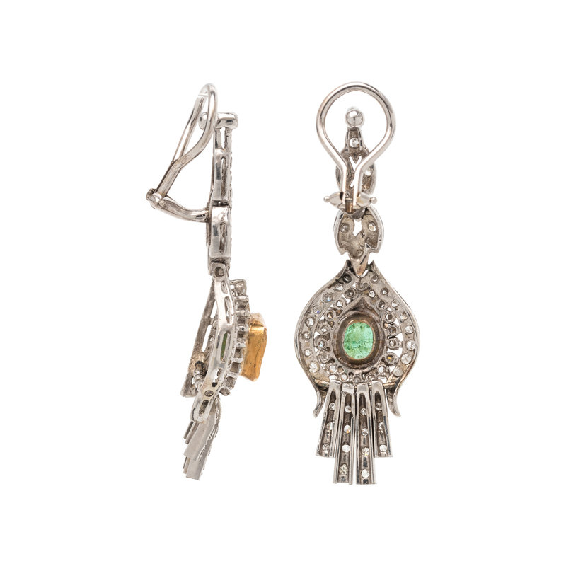 EMERALD AND DIAMOND EARCLIPS