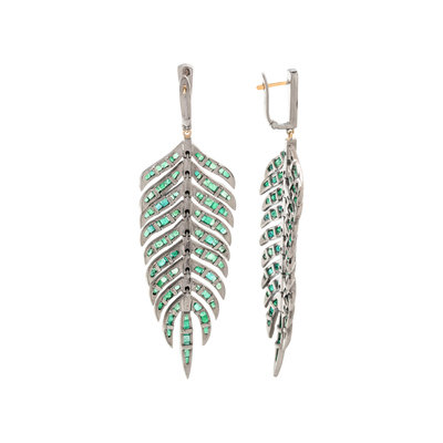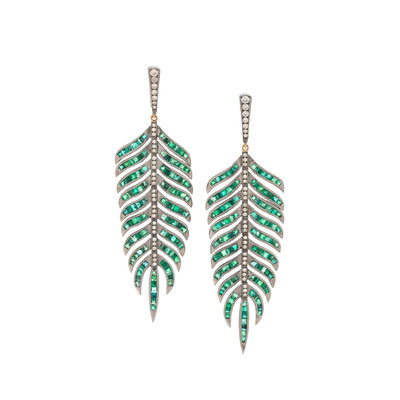 EMERALD AND DIAMOND FEATHER EARRINGS