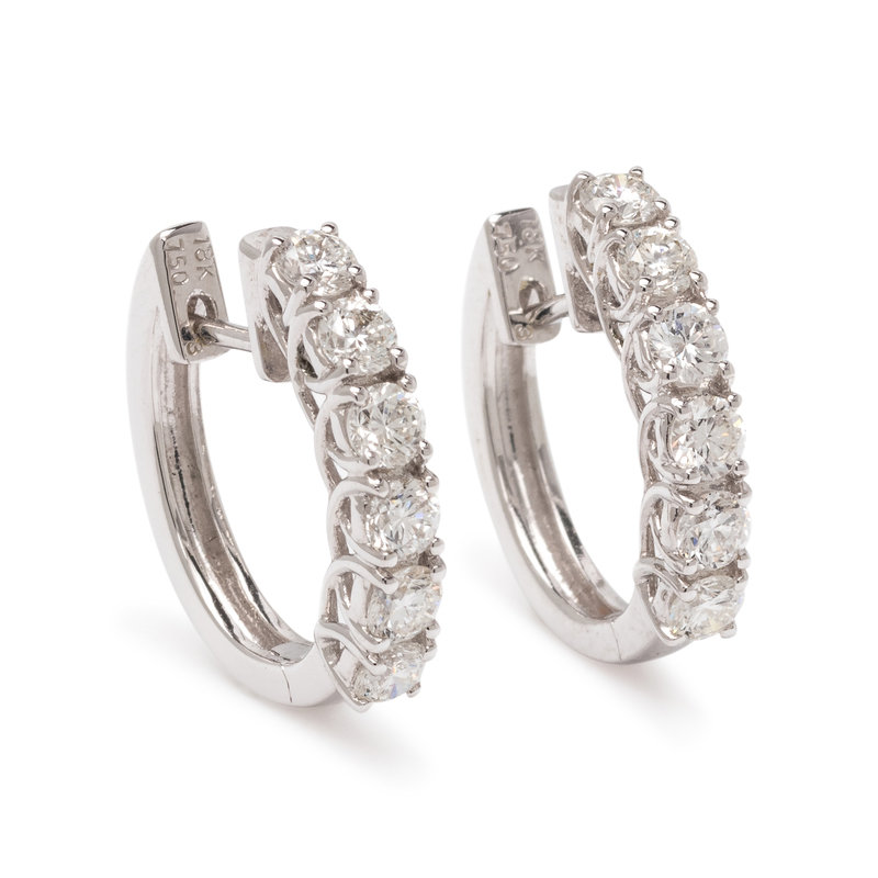 Containing 12 round brilliant cut diamonds weighing approximately 1.00 carat total. Mounted in white gold. 5/8 inch long.