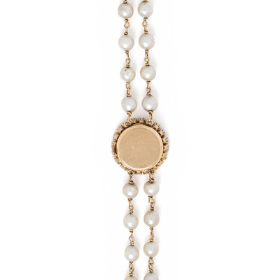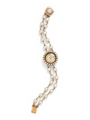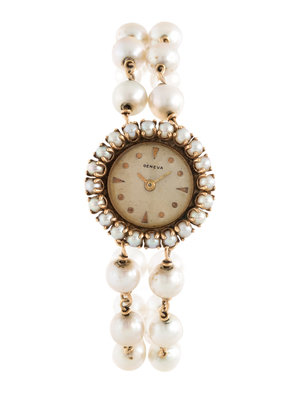 14K YELLOW GOLD AND CULTURED PEARL WRISTWATCH