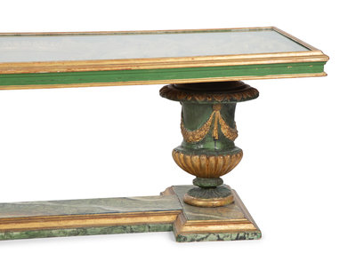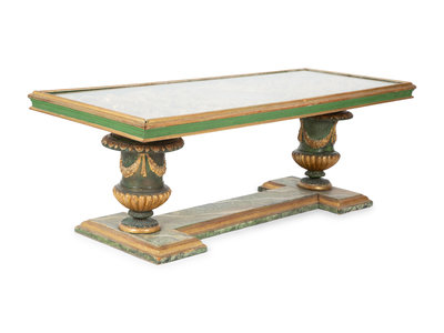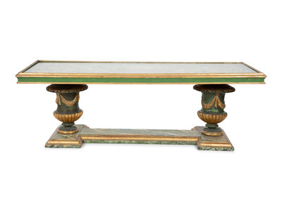 An Italian Faux Marble and Giltwood Two-Pedestal Coffee Table