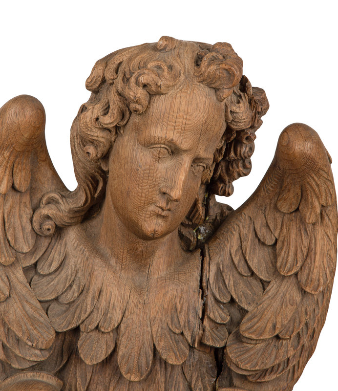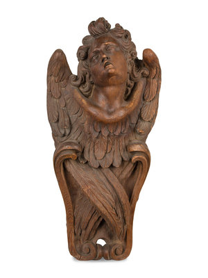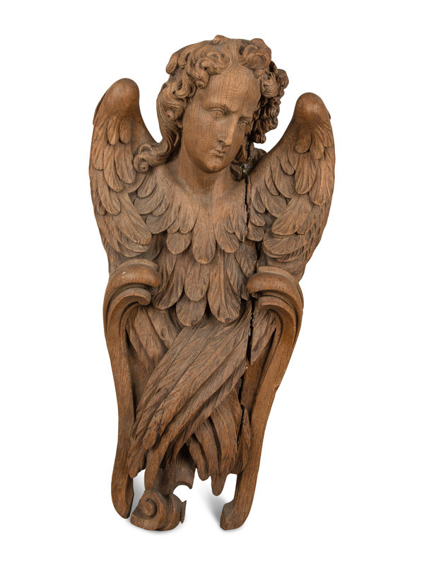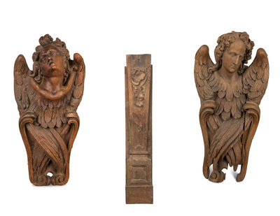 A Pair of Continental Oak Figural Pilasters