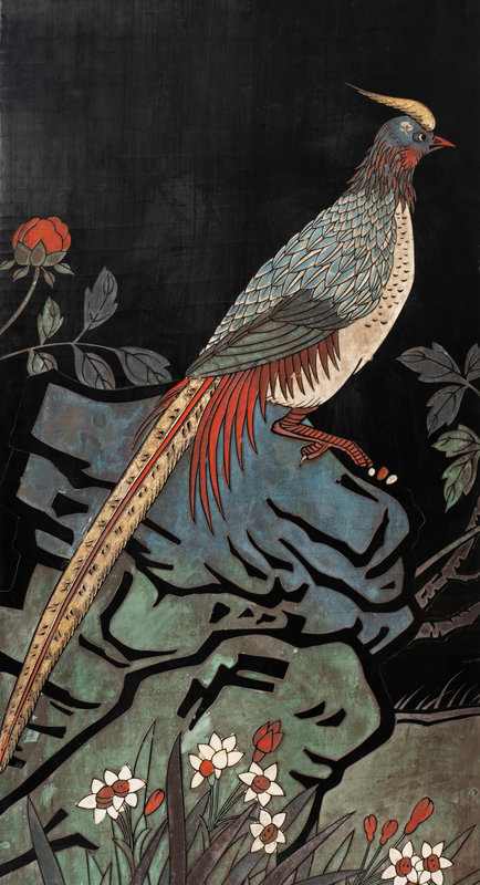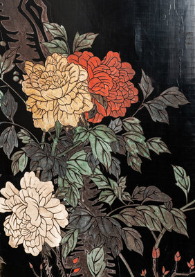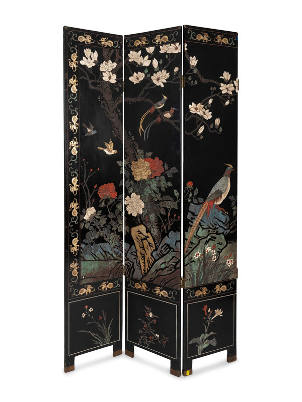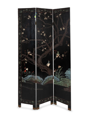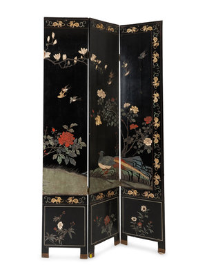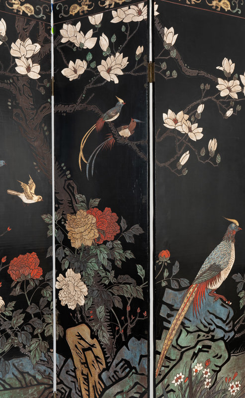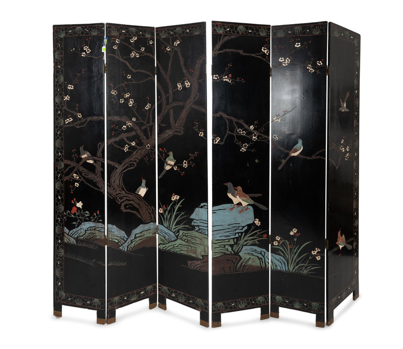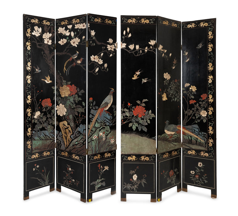 A Chinese Export Lacquer Six-Panel Floor Screen