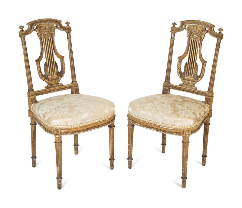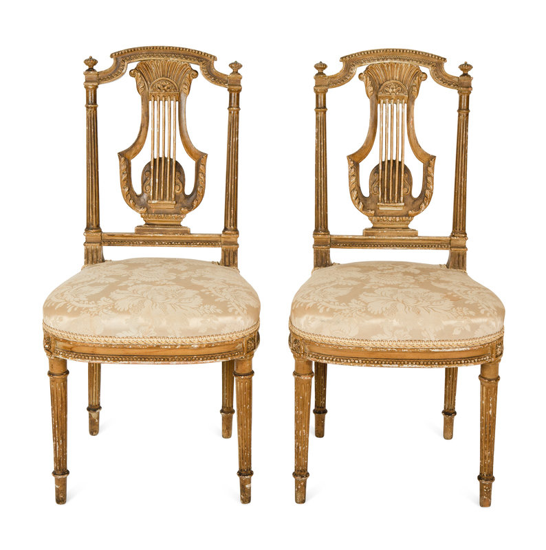 A Pair of Louis XVI Style Giltwood Lyre-Back Side Chairs