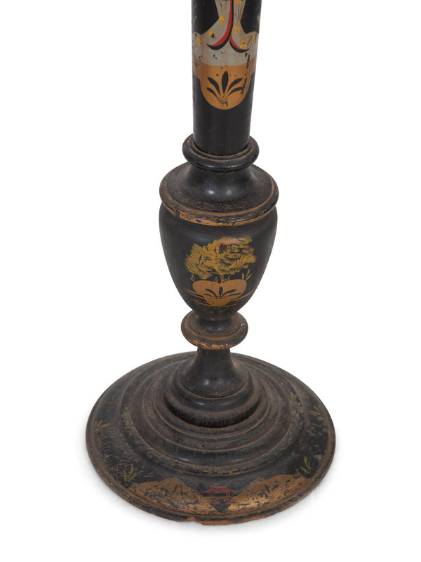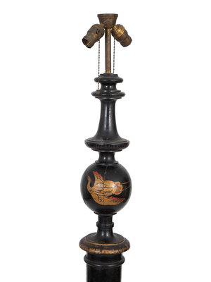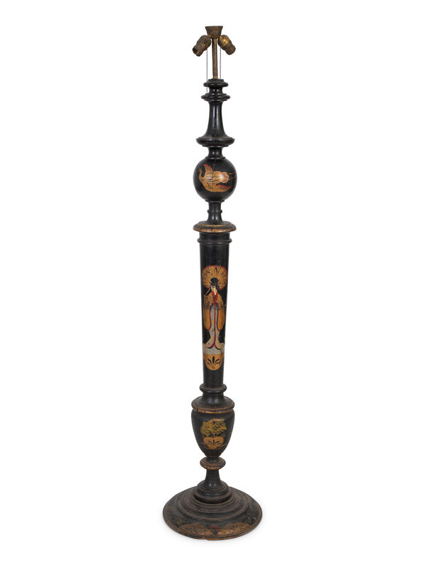 A Chinoiserie Black and Polychromed Lacquer Floor Lamp