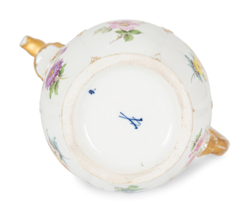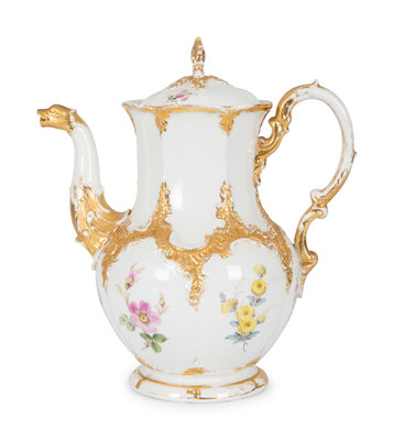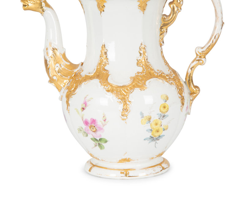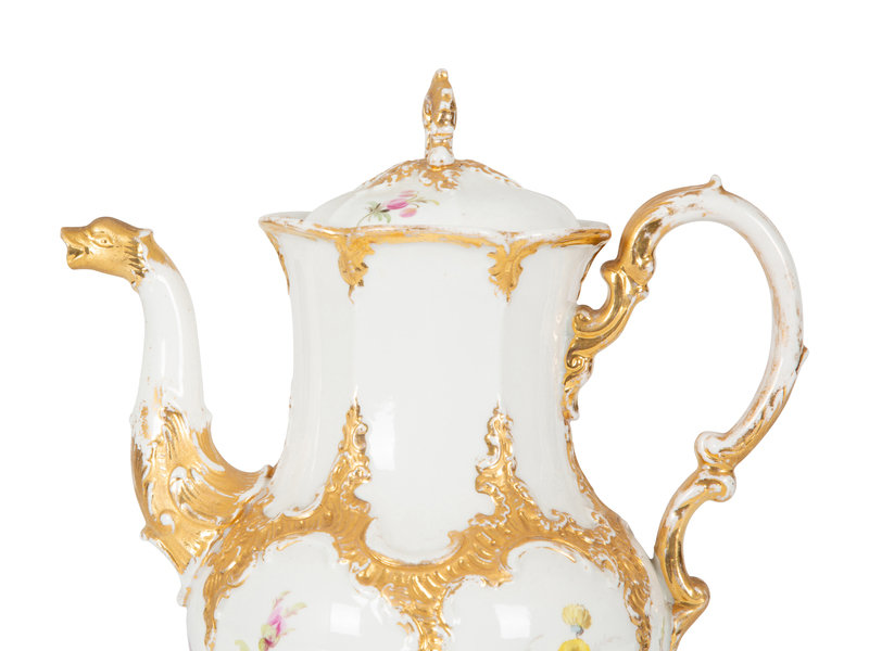 A Meissen Porcelain Coffee Pot with Floral Decoration and Figural Spout