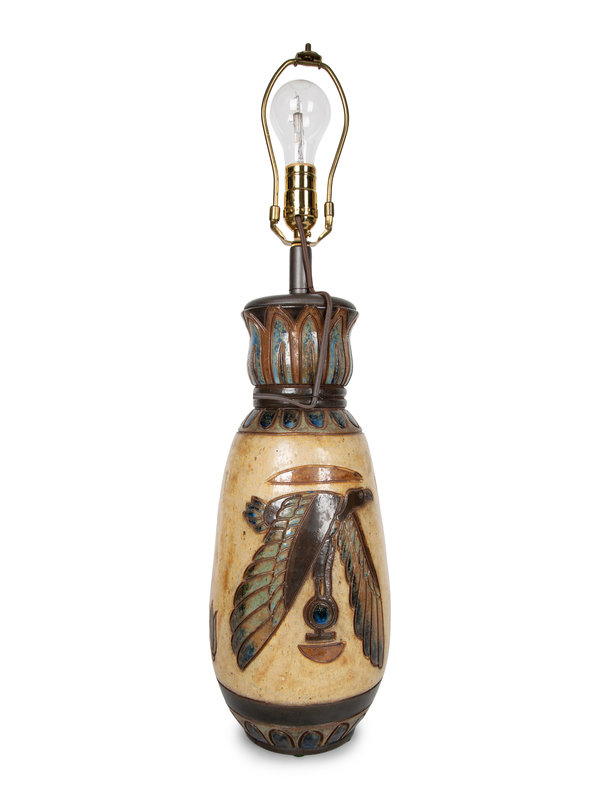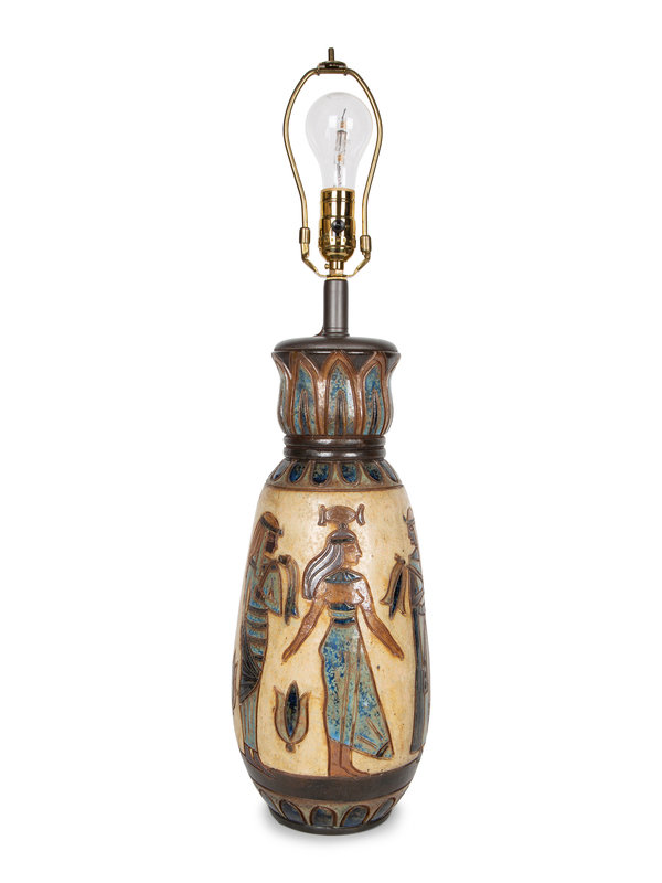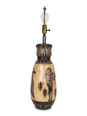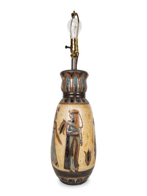 A French Polychrome Glazed Stoneware Vase with Egyptian Motif signed Dubois