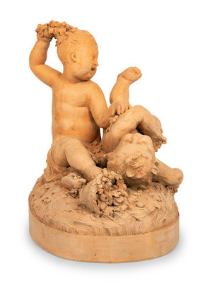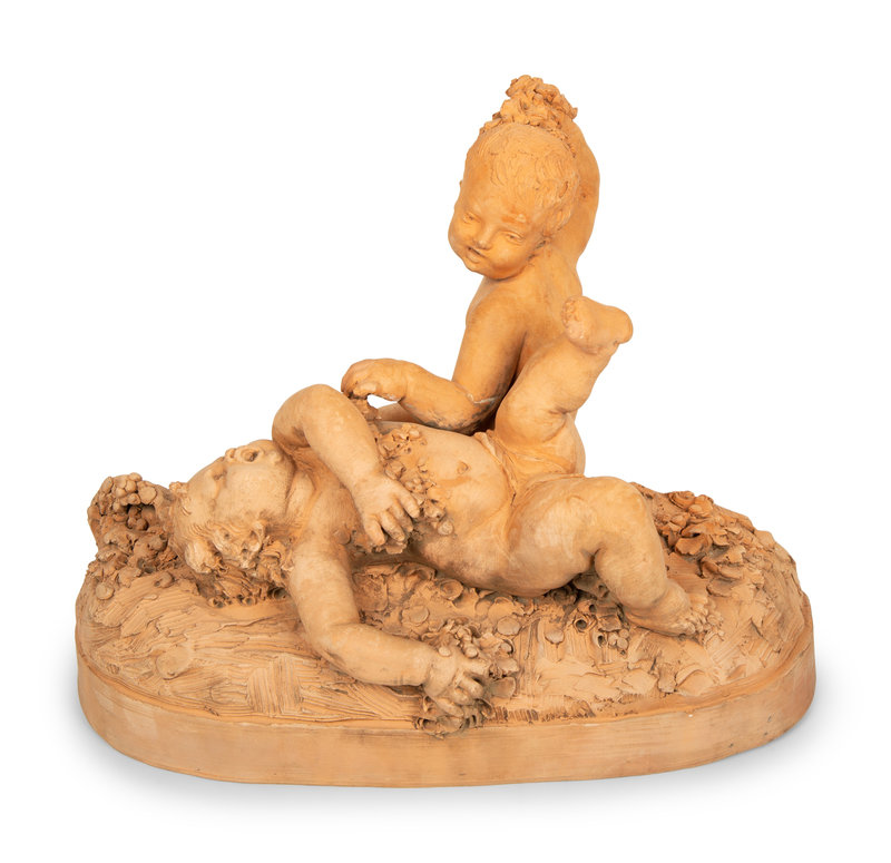 A Continental Terra Cotta Figural Group in the Style of Clodion