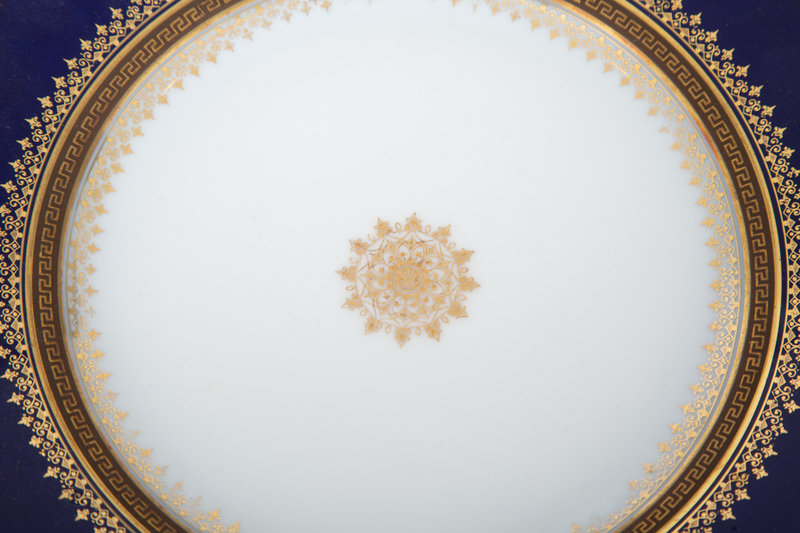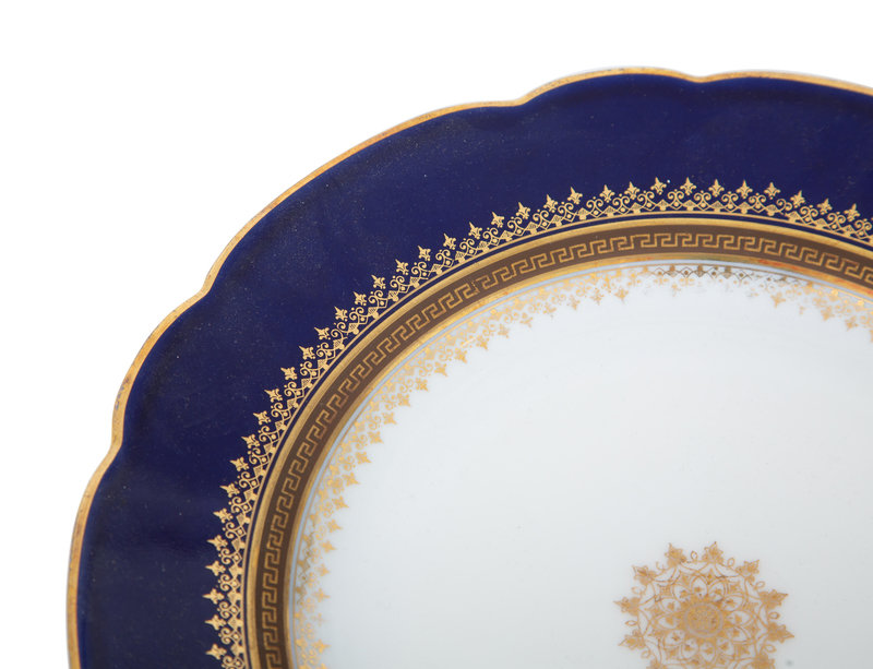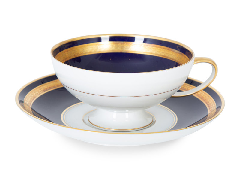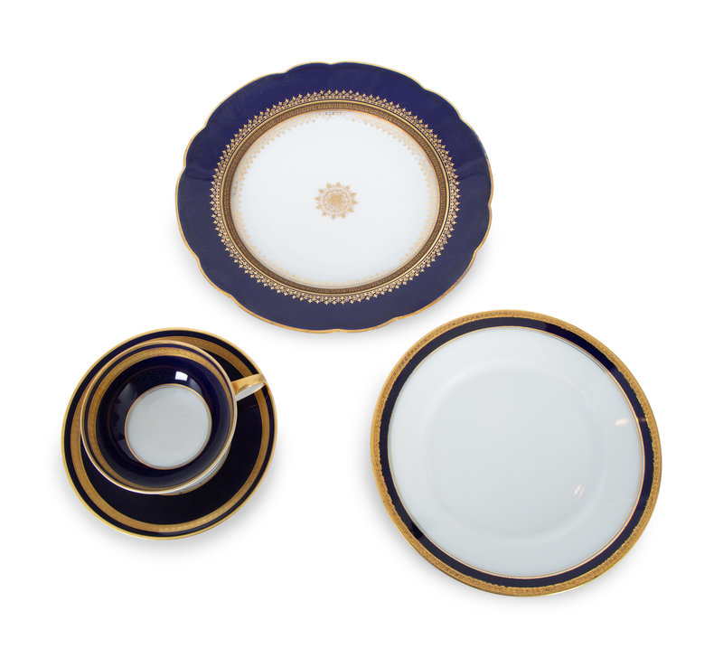 A 50-Piece Miscellaneous Group of Cobalt and Gilt Decorated Porcelain Dinnerware