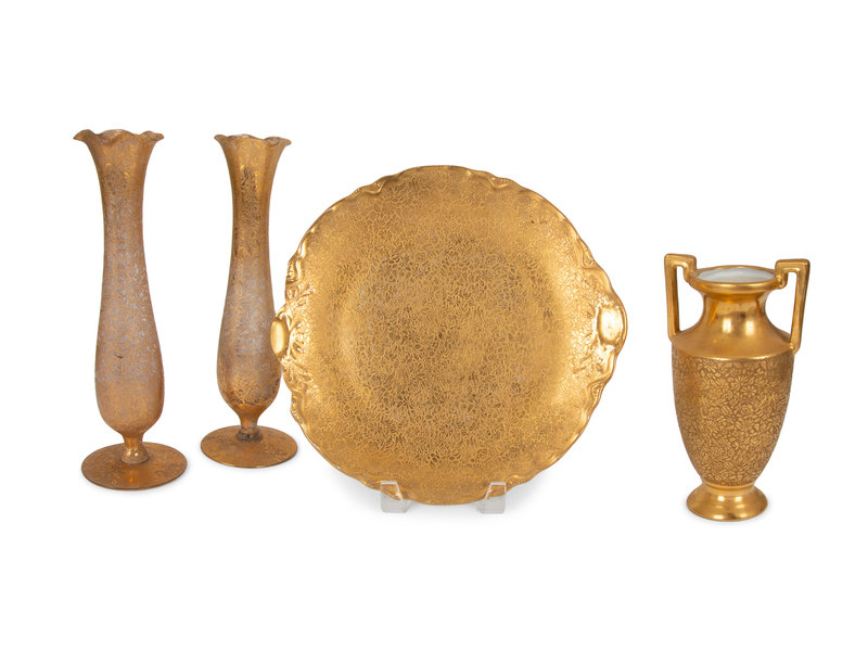 Four Pieces of Gilt Decorated Porcelain and Glass