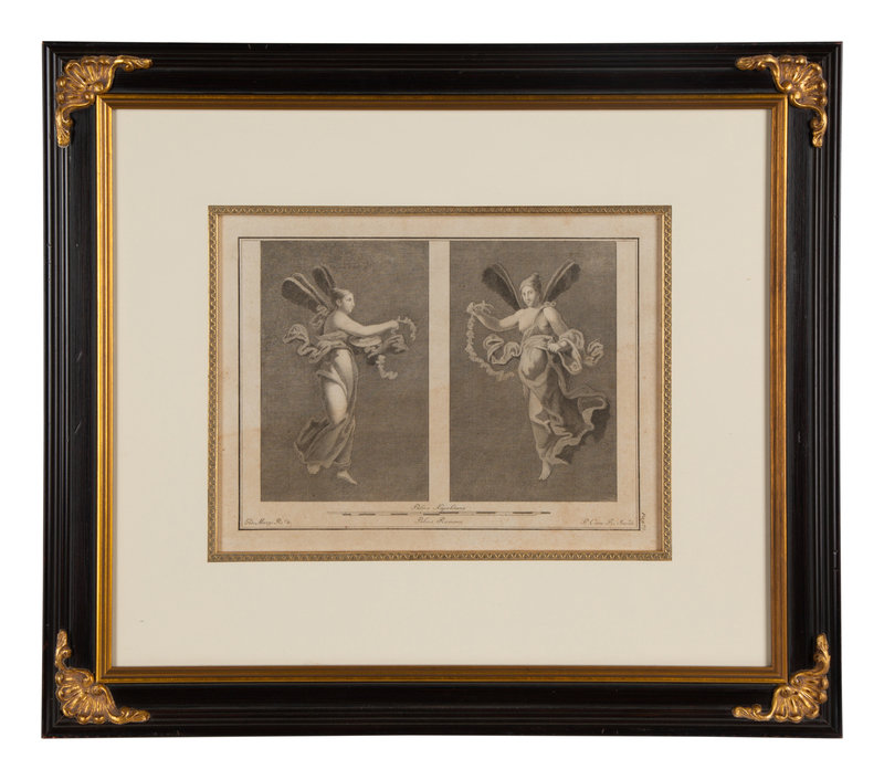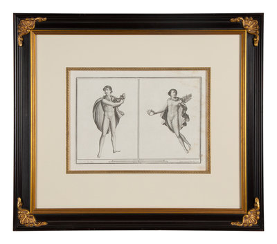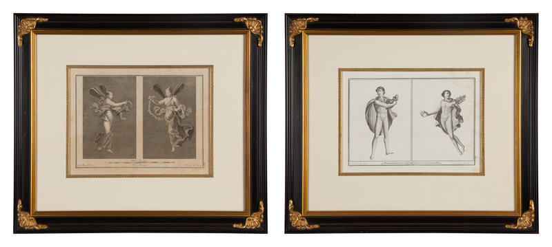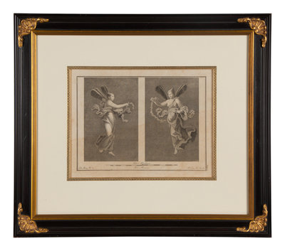 A Pair of Italian Engravings in Parcel Gilt and Ebonized Frames