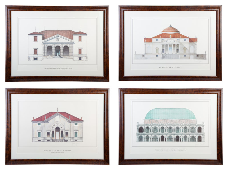 Four Framed Architectural Color Prints by Giovanni Giaconi from The Villas of Palladino