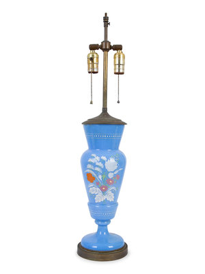 A Bristol Blue Glass Vase now Mounted as a Lamp