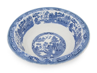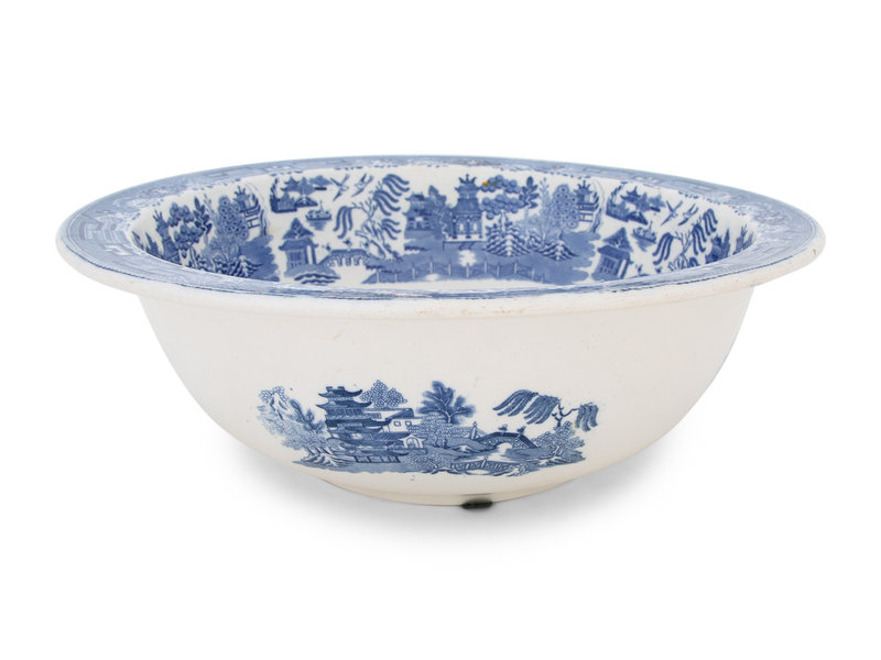 A Large English Blue and White Transfer Decorated Porcelain Basin