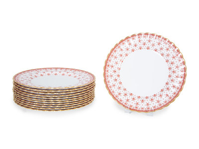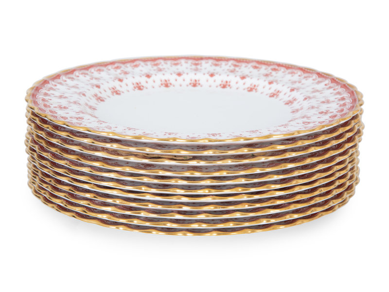 Twelve Spode Fleur de Lys Porcelain Dinner Plates