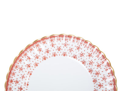 with red decoration and having a gilt trim.