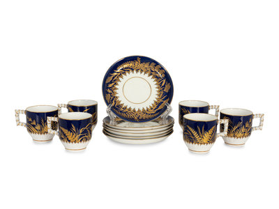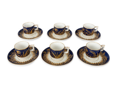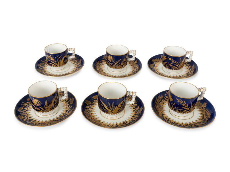 A Set of Six Burslem Porcelain Butterfly and Foliage Cups and Saucers
