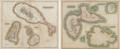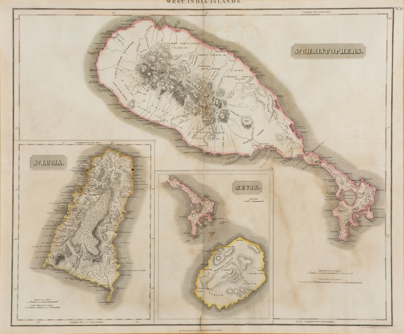 A Pair of Engraved Maps of West Indies Islands by Kirkwood and Son of Edinburgh