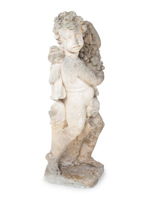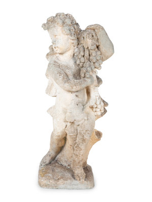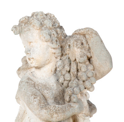 A Cast Stone Figure of Cherub Holding Grapes