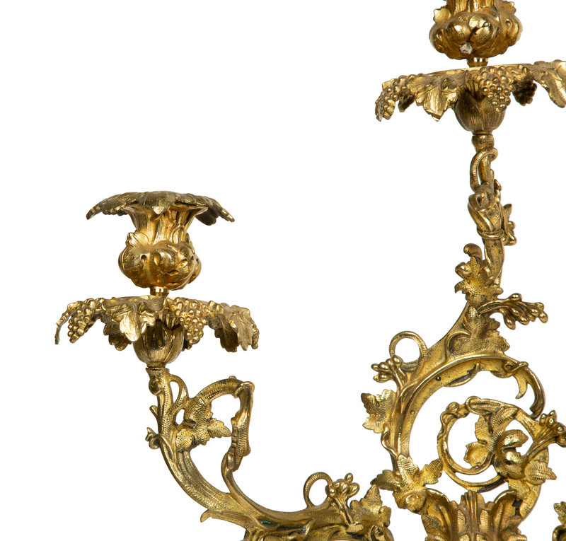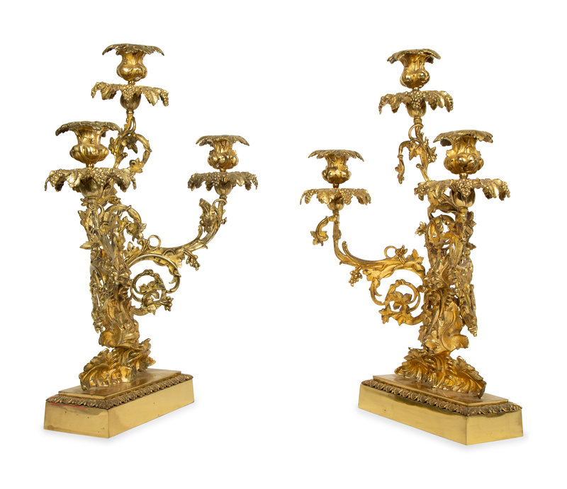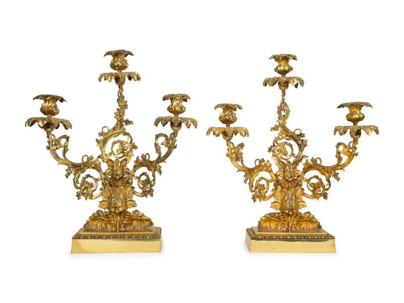 A Pair of American Gilt Bronze Three-Light Candelabra